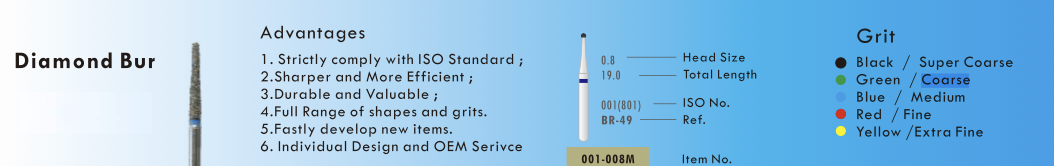 Our round end cone diamond bur is a precision dental instrument designed for efficient and precise cutting of dental materials. The working end of the bur is coated with high-quality diamond particles, providing a hard and sharp cutting edge that can quickly and accurately remove dental material without damaging the surrounding tissues.